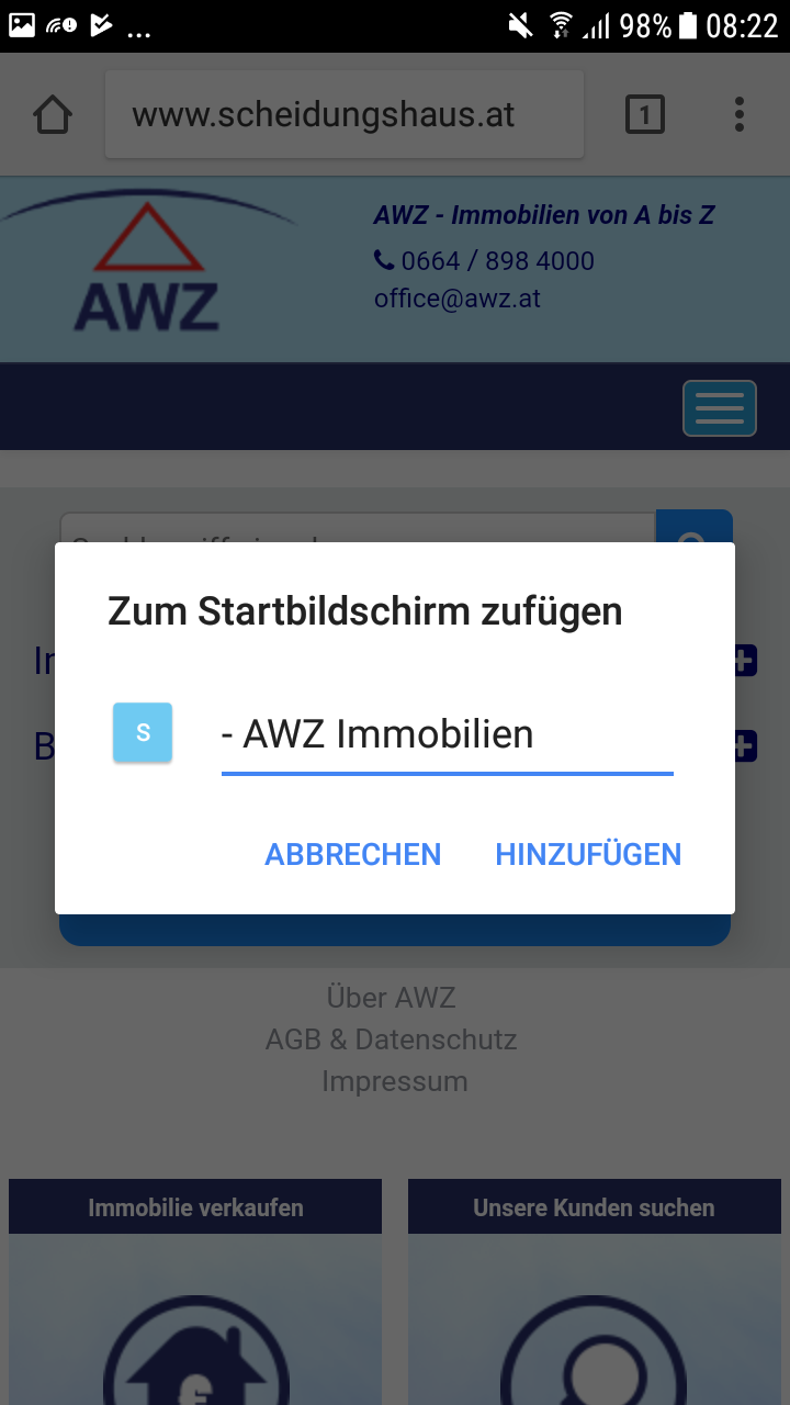 So legen Sie das AWZ Lesezeichen auf ihrem Startbildschirm an